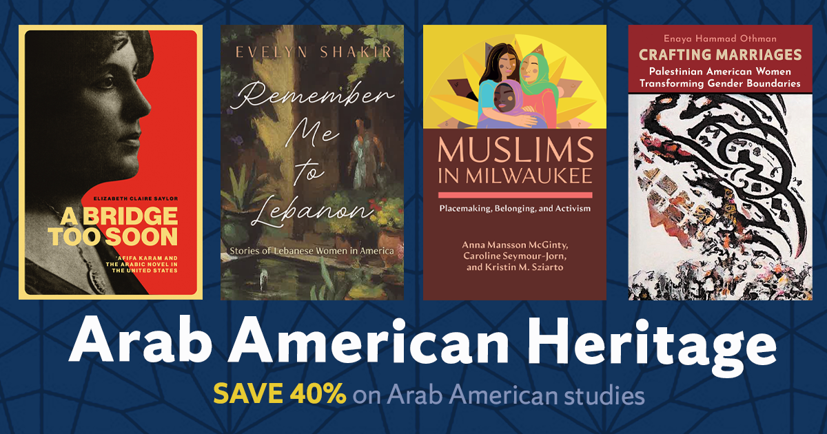 April marks Arab American Heritage month, a time to celebrate culture and the Arab American figures who have made an impact on American life. Syracuse University Press has long published on a wide range of Middle Eastern studies and has covered the intersection with American studies and contemporary life across decades of books. Below are some of the most recent titles on the subject, all available with the rest of the books on the subject, for 40% off during our Arab American Heritage Month sale.